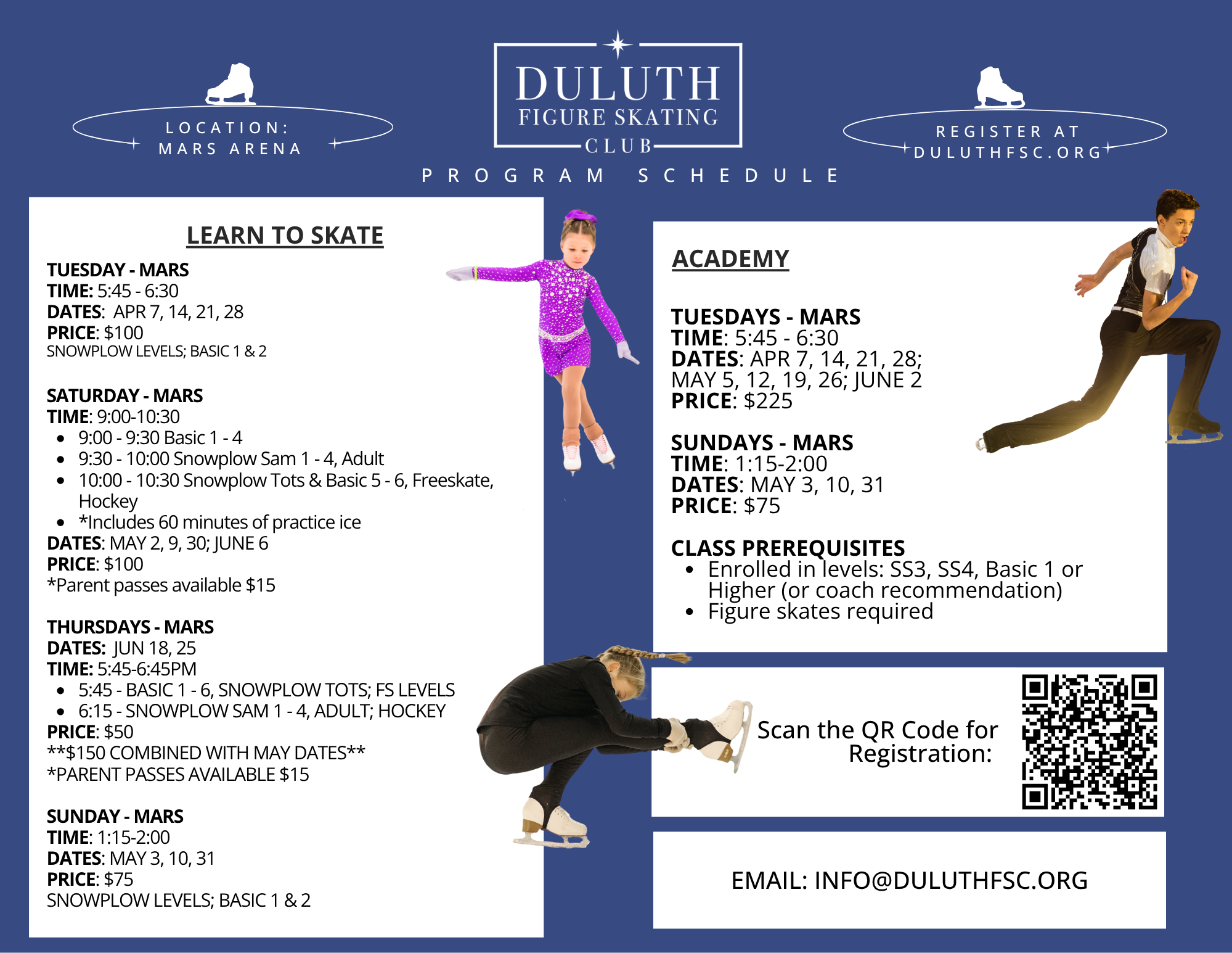 Registration is now open for the 2026 Duluth Figure Skating Club Ice Show, Keepin’ It 100. Packages range from $62.50–$125.00 and are available for Learn to Skate, Academy, and Club members.