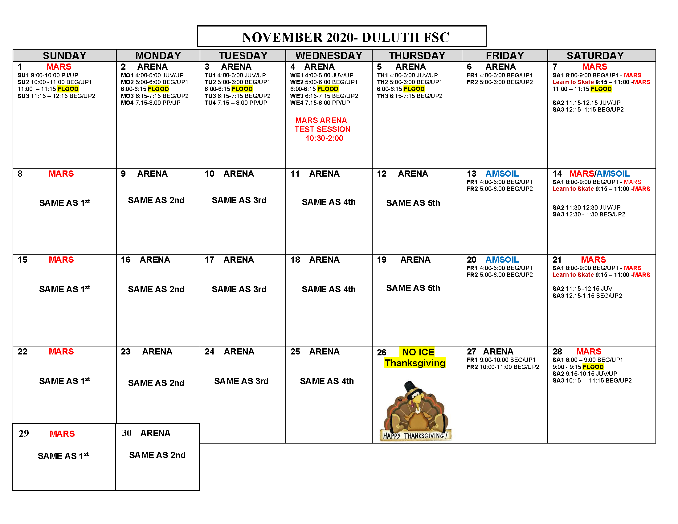 November 2020 Contracting Calendar for Duluth FSC Club Members